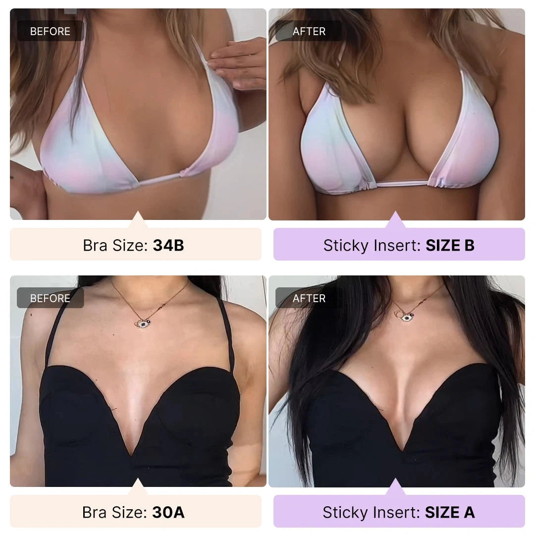 Enjoy padded bottoms that provide an instant cup size boost while being sticky on both sides for a secure, invisible fit under any outfit, enhancing your natural shape effortlessly.